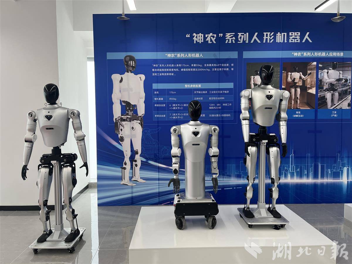 湖北日报讯(记者张珍珍通讯员刘玉佳)11月5日,5台人形机器人“神农”、4台四足机器人“赤兔”亮相光谷,介绍汽车应急装备与机器人技术创新联盟“平台”,将应用于我省应急装备场景,推动技术创新。本次活动在光谷随州(武汉)离岸中心举行。人形机器人“神农”以多种姿势与工作人员交流。据报道,该机器人全身有 43 个自由度。壳体与机械结构为一体成型。具有刚性高、重量轻等优点。电机最大扭矩和扭矩密度在仿人机器人领域位居全球前列。同时改进了运动控制算法,实时调整运动状态。 《神农》人形机器人系列。 (照片提供湖北日报媒体记者易文报道)四台四足“红兔”机器人也向公众亮相。该产品由电池供电,头部安装有许多传感器。他们能爬楼梯、穿越复杂地形,并有良好的平衡感。 “最大承载能力达到100公斤以上,适用于巡检、安防、应急救援等领域。”华中科技大学教授朱立军说。 2024年4月,在华中科技大学丁涵院士的带领下,组建了40余人组成的产学研一体化人形机器人研究团队,并在光谷成立了公司。