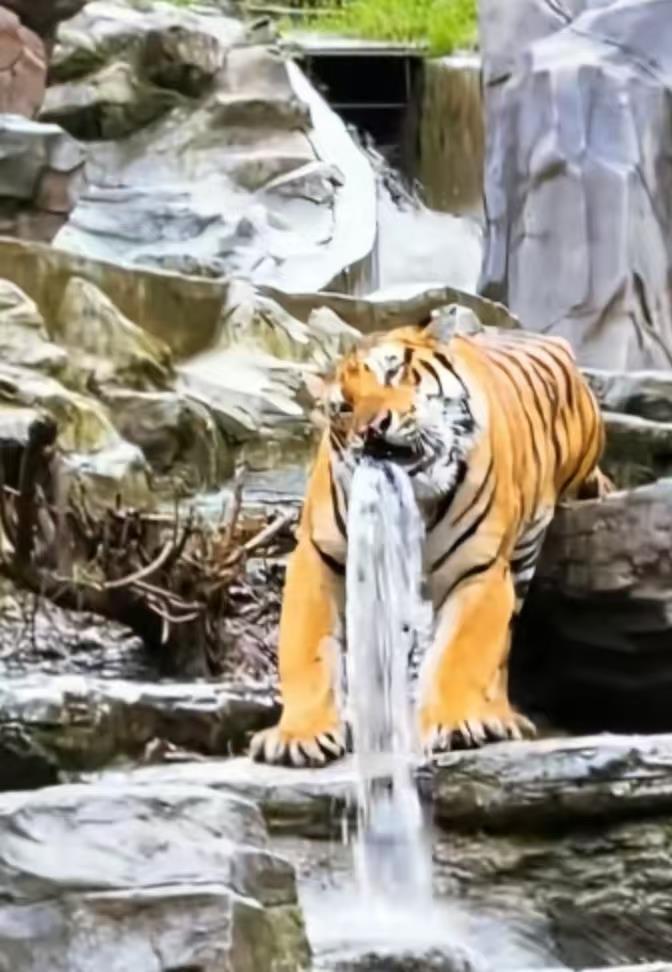 真正的老虎的瀑布!动物园回应了老虎的“喷泉