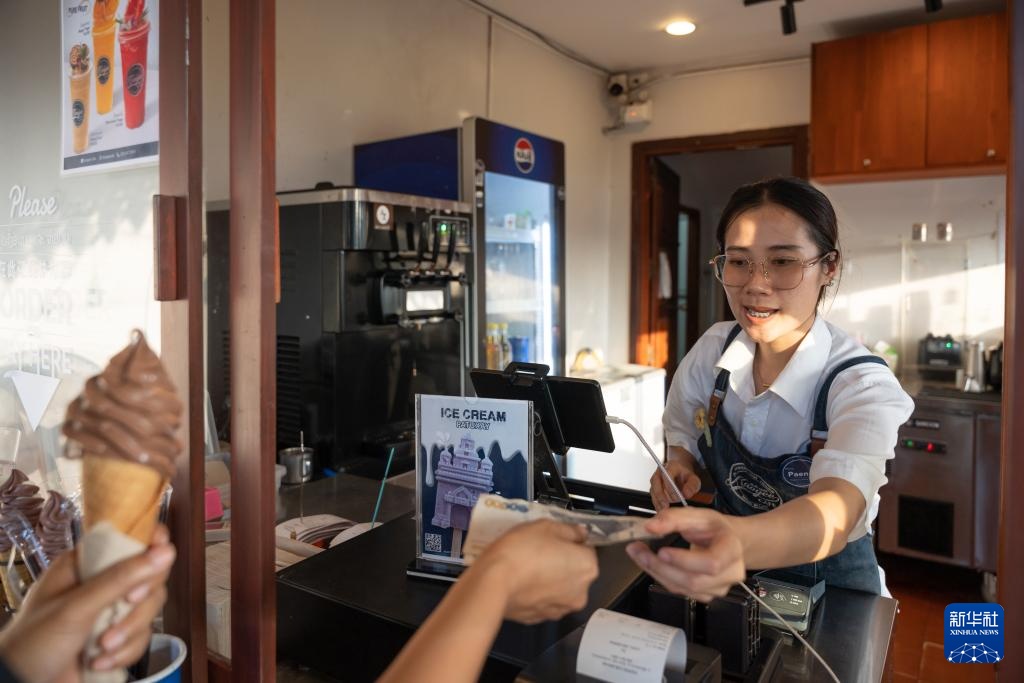 10月12日,老挝万象一家咖啡店里,一名女服务员正在工作。新华社发(乔凯 摄)10月13日,老挝万象一所公立幼儿园,几位老师引导孩子们做游戏。新华社(乔凯摄) 10月13日,老挝万象的一家药店内,一名妇女正在检查和分类产品。新华社发(乔凯 摄)10月12日,老挝万象塔銮广场,一名妇女在小吃摊准备食物。新华社发(乔凯 供)